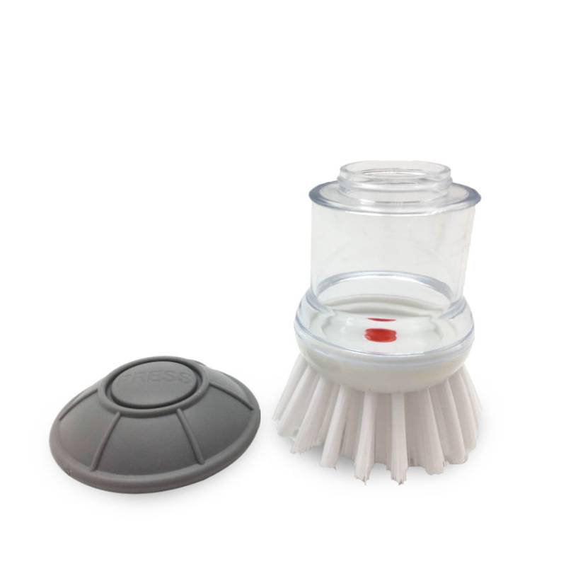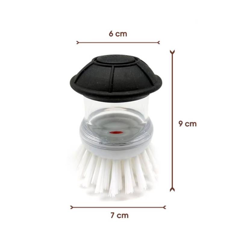 This palm-sized cleaning brush combines durable nylon bristles with an AS plastic reservoir, letting you dispense soap directly as you scrub dishes, sinks, and countertops.