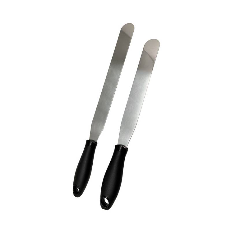 Large Spatula: 36 × 3 × 2 cm, 102 g—ideal for covering broad cake surfaces. Small Spatula: 31.5 × 3 × 2 cm, 79 g—perfect for reaching tight corners and fine details.