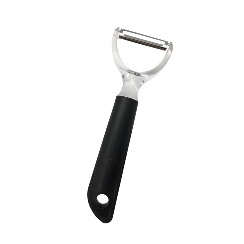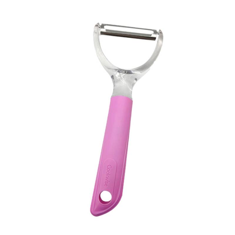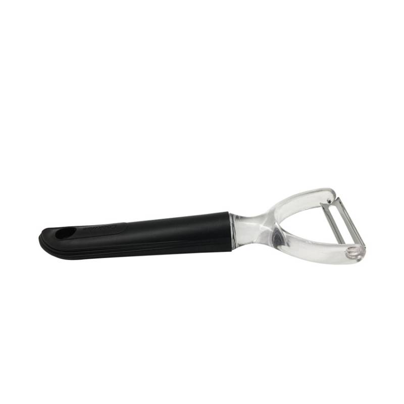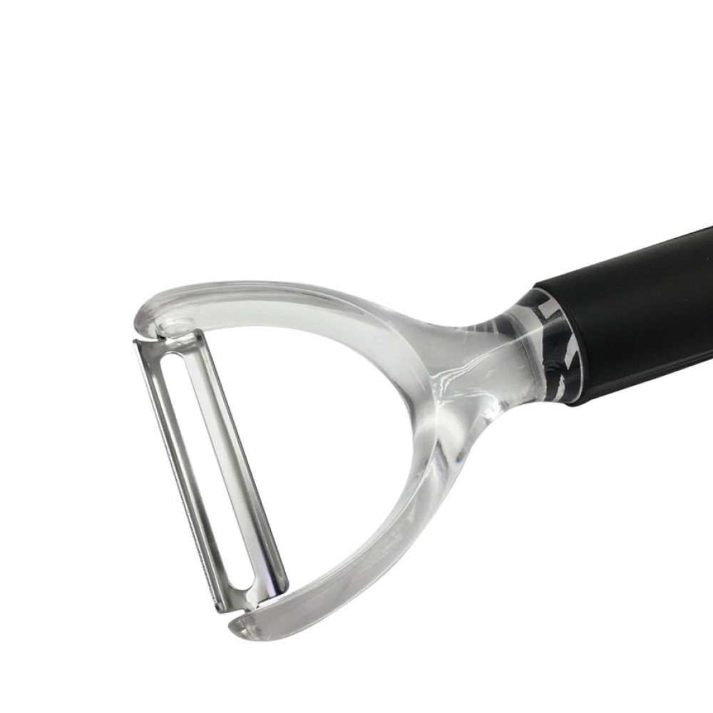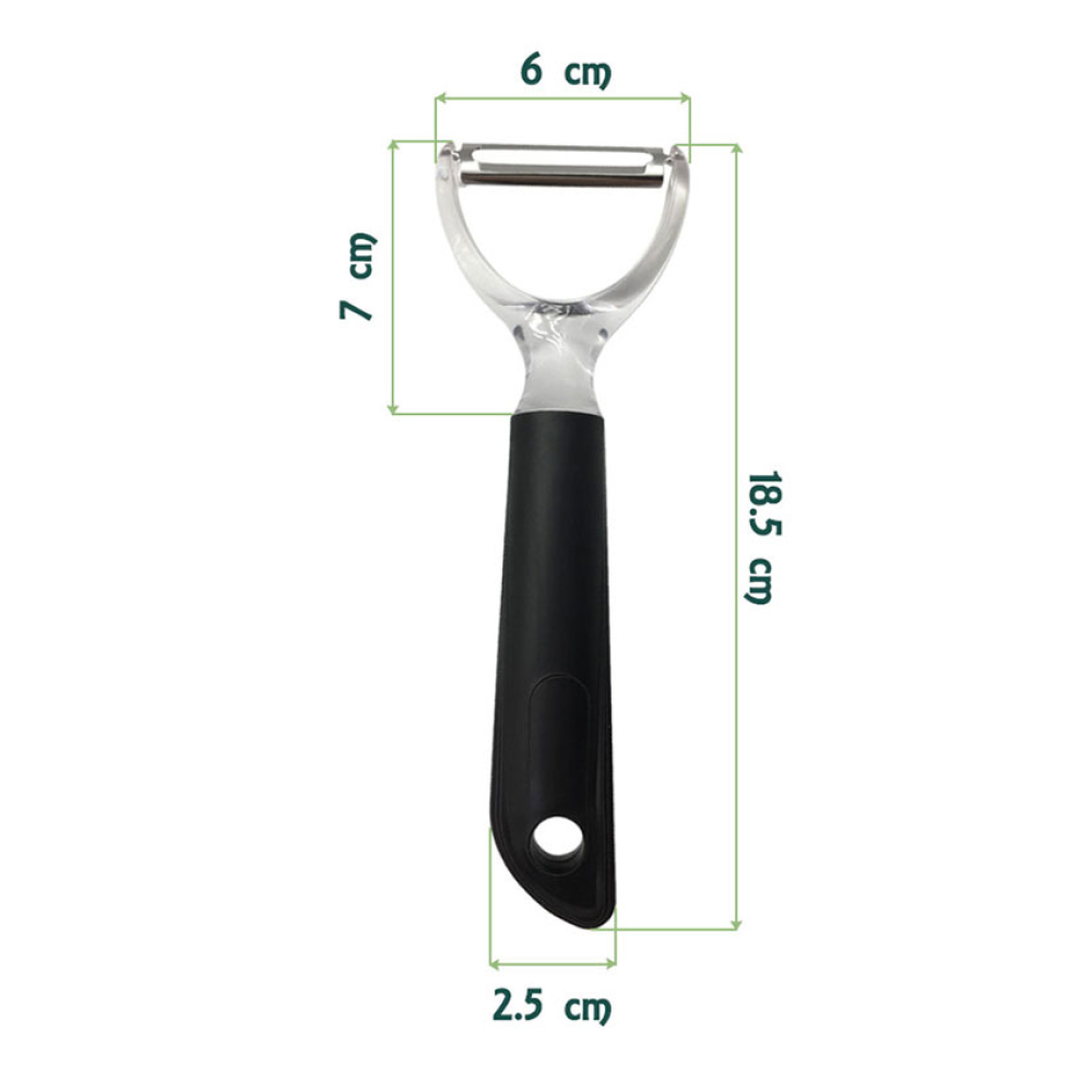 Y-shaped stainless steel vegetable peeler, designed for precision peeling with minimal effort. This peeler glides easily across a variety of produce surfaces—even wet or waxy ones—while keeping your grip secure and comfortable.